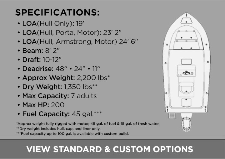 The NEW CudaCraft Guide Boat is the modern evolution of the legendary CudaCraft boats designed by Ray Bond in the 1950s. Renowned for their incredibly smooth, dry ride, top-quality construction, and spacious layout, CudaCraft has developed an almost cult-like following in the marine industry as one of the toughest, most capable and desirable 19’ center consoles on the market.